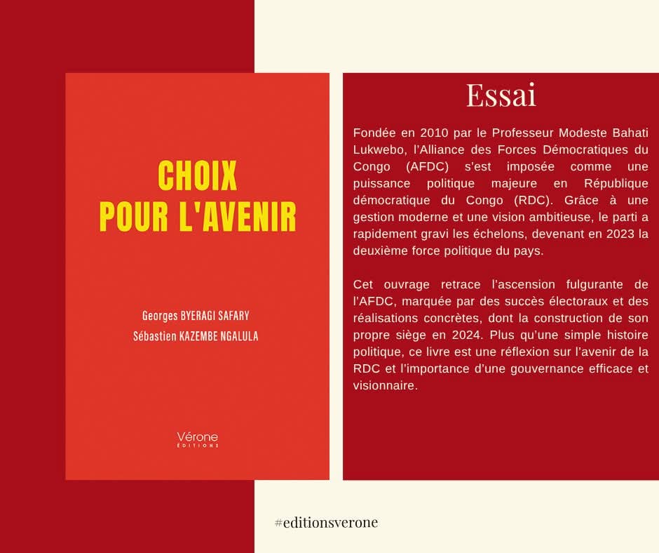Publié chez Vérone Éditions, l’ouvrage Choix pour l’avenir, signé par Georges Byeragi Safary et Sébastien Kazembe Ngalula, apporte un regard neuf sur l’histoire récente de la vie politique congolaise. Ce n’est pas un simple essai : c’est une exploration, à la fois analytique et narrative, du parcours de l’Alliance des Forces Démocratiques du Congo (AFDC) et de son leader, le Professeur Modeste Bahati Lukwebo.