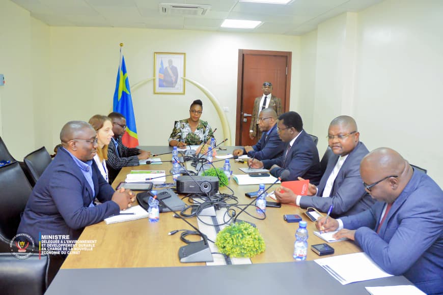 Étaient également présents à cette séance de travail Blaise Mudodosi, coordonnateur de l’Action pour la Promotion des Peuples et Espèces Menacés (APM), et Jean Moliba, Président du Conseil d’Administration de l’Autorité de Régulation du Marché Carbone (ARMCA). Les échanges ont notamment porté sur un rapport documentaire récemment diffusé par Rainforest Foundation, traitant de la gestion du crédit carbone en RDC. La Ministre déléguée a invité les partenaires à une approche plus concertée, rigoureuse et fondée sur des données vérifiables, afin d’éviter toute confusion dans la perception publique d’un secteur aussi stratégique.