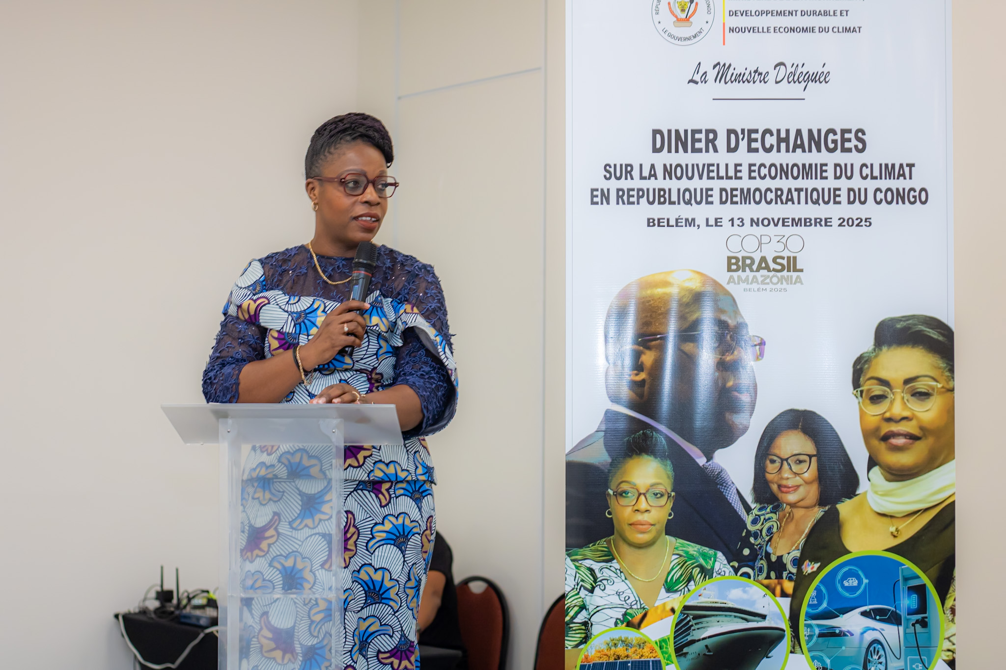 Dans la même dynamique, la Ministre Déléguée en charge de la Nouvelle Économie du Climat, Arlette Bahati Tito, a réuni, lors d’un dîner de haut niveau, des ambassadeurs, des représentants de différents pays, et des acteurs du secteur climat. Elle a présenté, à cette occasion, le potentiel écologique de la RDC, ainsi que les opportunités d’investissement qu’offre son pays dans la nouvelle économie du climat, en particulier autour du Couloir vert.