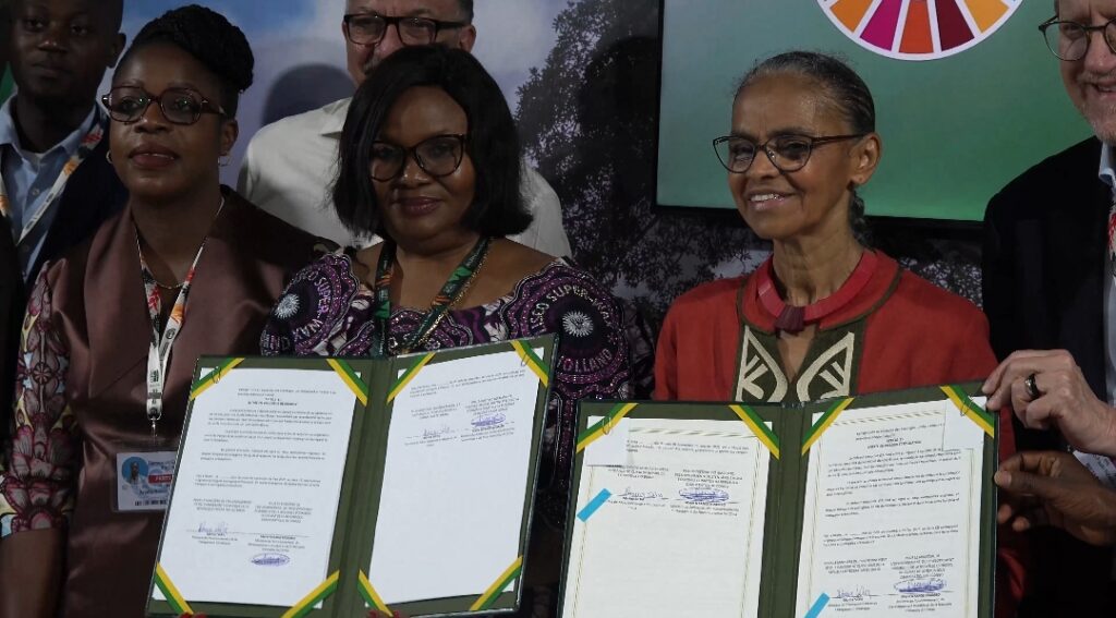 Dans un autre cadre diplomatique, la Ministre Déléguée en Charge de la Nouvelle Economie du Climat, Arlette Bahati Tito, a participé activement à la signature d’un Mémorandum d’entente entre la RDC et le Brésil. C’est la Ministre de l’Environnement, Marie Nyange Ndambo, cheffe de la délégation congolaise, qui a apposé la signature pour le compte de la RDC.